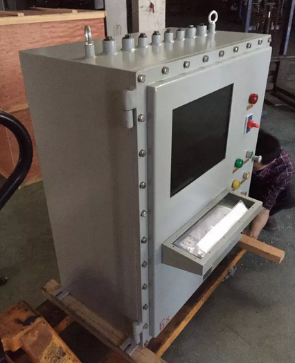 PLC帶觸摸屏做成防爆控制柜或者防爆控制箱外形可以根據(jù)用戶的不同需求而定,一般為立式、琴臺式,壁式等等,內(nèi)置PLC與觸摸屏連接,可以通過防爆鍵盤,防爆鼠標(biāo)進(jìn)行控制即可,觸摸屏密封保護為5mm厚度的鋼化玻璃進(jìn)行防爆密封處理。